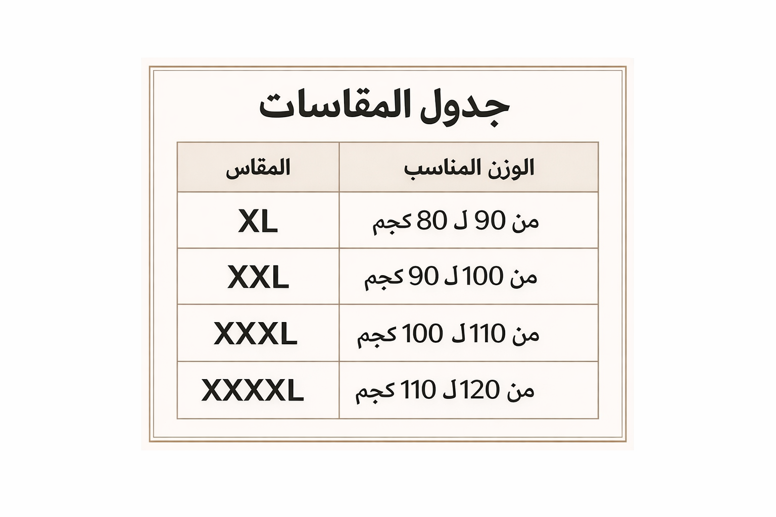 XXXXL من 110 لـ 120 كيلو